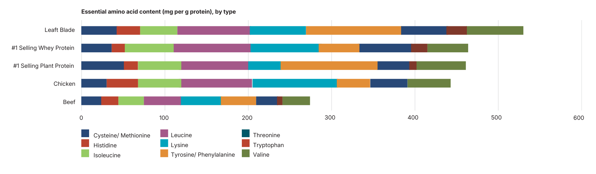 Leaft Blade derives more essential amino acids per gram of protein than leading whey and plant proteins.